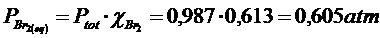 Per ogni 100 molecole di Br2 inizialmente presenti, 24 reagiscono producendo 48 atomi di Br, mentre le altre 76 molecole rimangono inalterate. All'equilibrio troveremo 76+48=124 particelle. La frazione molare di Br2 all'equilibrio sarà 76/124=0,613, mentre quella di Br sarà 48/124=0,387