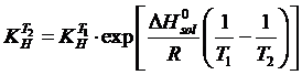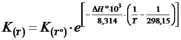 La relazione (di van't Hoff) vale per due temperature qualsiasi, ma è particolarmente utile se T° = 298,15 K in quanto i valori delle grandezze termodinamiche sono tabulati per tale temperatura. In questo caso la 5) diventa