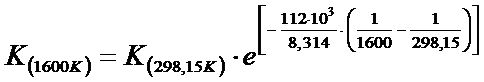 ora calcoliamo la costante di equilibrio a 1600 K