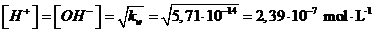 essendo poi kw = [H+][OH-] e, per l'acqua pura, [H+]=[OH-] si avrà