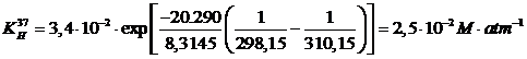 Calcoliamo la costante di Henry a 37° C (= 310,15K)