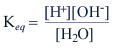 Kw = Keq [H2O] = [H+] [OH-] = 1.8 x 10-16 x 55.56 = 1 x 10-14
