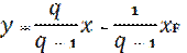 Ed è proprio ora che definiamo q o fattore entalpico come la frazione di alimentazione che si aggiunge alla portata liquida L per costituire la portata liquida L'. La linea q corrisponde allo stato fisico dell'alimentazione. Essa viene tracciata riportando sulla bisettrice il punto relativo alla frazione molare dell'alimentazione, quindi si traccia una retta con una pendenza che è correlata allo stato dell'alimentazione, e più precisamente: