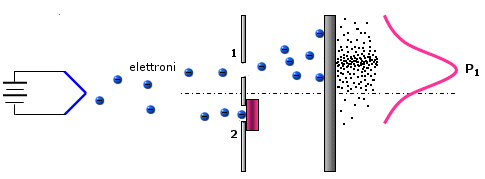 Il fatto che anche un singolo elettrone, il quale chiaramente interagisce con lo schermo come una particella (il cui urto è osservabile come un minuscolo lampo luminoso), si comporti in realtà durante il tragitto come un'onda, la quale, per poter interferire deve passare contemporaneamente attraverso entrambe le fenditure aperte, ci induce a chiederci se l'elettrone in quanto particella passi effettivamente o per la fenditura 1 o per la fenditura 2, quando entrambe le fenditure sono aperte.