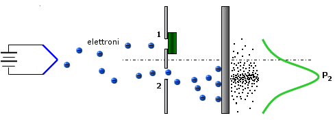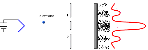 Anche se si fanno passare, attraverso le due fenditure aperte, singoli elettroni a grandi intervalli di tempo l'uno dall'altro, essi andranno a cadere solo in corrispondenza dei massimi d'interferenza.