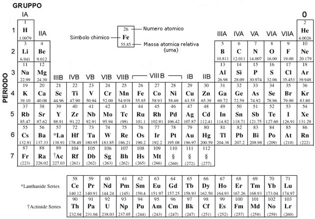 I 92 tipi di atomi o elementi sono stati ordinati in una tabella in ordine di numero atomico crescente, dal più leggero, l'Idrogeno, al più pesante, l'Uranio (il peso atomico dipende essenzialmente dal numero totale dei protoni e dei neutroni (nucleoni) che si trovano nel nucleo e quindi dal numero atomico).