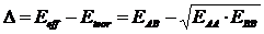 In altre parole, l'energia di risonanza ionico-covalente Δ misura la differenza di energia tra il legame covalente reale AB ed un ipotetico legame covalente puro AB (legame covalente normale).