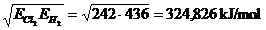 Calcoliamo l'elettronegatività del Cloro secondo Pauling, sapendo che l'energia del legame H2 è 436 kJ/mol, del legame Cl2 è 242 kJ/mol e del legame HCl è 431 kJ/mol.