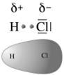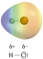 Sopra l'atomo di Cloro è presente una parziale carica negativa (-) pari al 18% dell'intera carica dell'elettrone, mentre sopra l'atomo di Idrogeno sarà presente una parziale carica positiva (+) della medesima intensità.