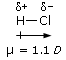 Ad esempio, sapendo che il momento dipolare dell'acido cloridrico è μHCl = 1,1 D e la lunghezza del legame H-Cl è di 1,27 Å, si calcola