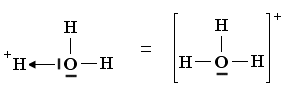 Un esempio si ha nella reazione di dissociazione ionica dell'acqua in ioni H+ e ioni OH-. In realtà in soluzione non esistono ioni H+ liberi poiché essi usano il loro orbitale 1s vuoto per legarsi, tramite legame dativo, ad uno dei due doppietti solitari dell'ossigeno di una molecola d'acqua, con formazione di ioni ossonio (o idronio) H3O+.