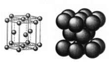 12 atomi sono disposti ai vertici di un prisma a base esagonale, 2 atomi al centro di ciascuna base e 3 atomi all'interno della cella, a metà altezza, a formare i vertici di un triangolo equilatero