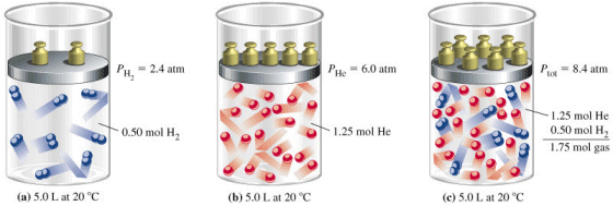 Quando due o più gas vengono mescolati in un recipiente, senza che tra essi avvenga alcuna reazione, la pressione totale esercitata dalla miscela gassosa è uguale alla somma delle pressioni che ciascun componente la miscela eserciterebbe se occupasse da solo tutto il recipiente (pressione parziale del componente).