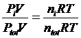 Dividendo membro a membro l'equazione di stato di ciascun componente per l'equazione di stato della miscela si ottiene