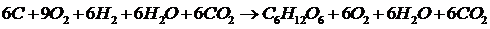 6H2O + 6CO2 → C6H12O6 + 6O2 +