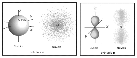 Gli elettroni orbitano intorno al nucleo secondo schemi particolari, scoperti solamente nella prima metà del Novecento. Inizialmente si riteneva che gli elettroni percorressero traiettorie definite all'interno di orbite circolari ed ellittiche. Successivamente si è scoperto che è impossibile definire con precisione la traiettoria di un elettrone ed il concetto di orbita è stato sostituito dal concetto di orbitale. L'orbitale è la regione di spazio intorno al nucleo alla quale si associa una certa probabilità, arbitrariamente fissata (in genere del 90-95%) di trovare l'elettrone. Gli orbitali vengono rappresentati tramite gusci delimitati da superfici chiuse o tramite nuvole sfumate (nuvola elettronica) la cui intensità di colore è proporzionale alla probabilità di trovare l'elettrone. Vi sono 4 tipi di orbitali di forma diversa, indicati con le lettere s, p, d, f. Gli orbitali s sono sferici, gli orbitali p sono bilobati, mentre gli orbitali d ed f hanno complesse forme multilobate.