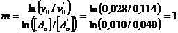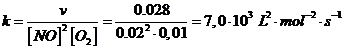 La costante di velocità specifica si può calcolare esplicitandola dalla reazione precedente e sostituendo opportunamente i valori di concentrazione e velocità scelti da una riga qualsiasi della tabella dei dati forniti dal problema