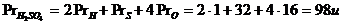Ad esempio il peso molecolare dell'acido solforico H2SO4 è pari a