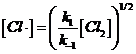 essendo dunque v1 = v-1, possiamo eguagliare anche i secondi membri ed esplicitare la concentrazione di Cl∙
