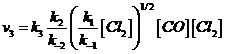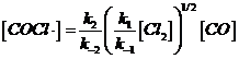 sostituiamo ora nella 4) la concentrazione dell'intermedio chimico COCl∙, con la il risultato della 3) in cui la concentrazione dell'intermedio è espressa in funzione delle concentrazioni dei reagenti (CO e Cl2)