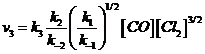 essendo dunque v2 = v-2, possiamo eguagliare anche i secondi membri ed esplicitare la concentrazione di COCl∙