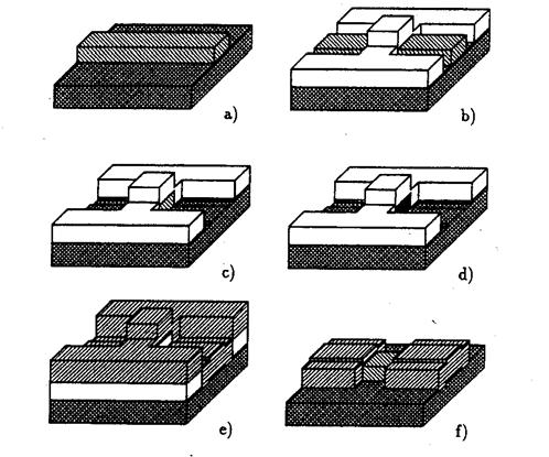 iv. Formazione di una barriera dielettrica sulla superficie esposta dell'isola (Fig. 1(d)).