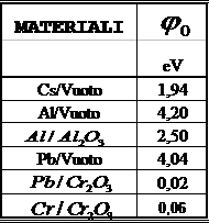 Tab. I: Altezze di barriera per diverse possibili coppie di materiali da usare per realizzare una giunzione tunnel.