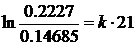 PA(21 min) = 0,2227 - x = 0,2227 - 0,07585 = 0,14685 atm