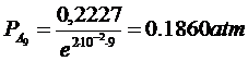 Al tempo t = 0 la pressione totale è generata solo dal reagente ( i prodotti non si sono ancora formati) per cui la pressione di A al tempo t = 0 è pari a 0.2227 atm.