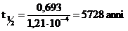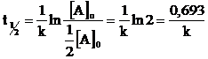 Come si può osservare, nel caso di cinetiche di primo ordine, il tempo di dimezzamento dipende solo dal valore di k e non dalla concentrazione iniziale. Nel caso dei decadimenti radioattivi k prende il nome di costante di decadimento radioattivo. Sapendo ad esempio che la costante di decadimento del carbonio14 è pari a 1,21.10-4 anni-1, possiamo facilmente calcolare il suo tempo di dimezzamento