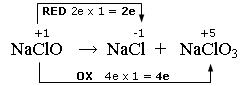 Nell'esempio che segue, alcune molecole di ipoclorito si riducono a cloruro, altre si ossidano a clorato
