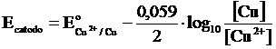 Riprendiamo in esame la pila Daniell e calcoliamo per ciascuna semicella il potenziale in condizioni di concentrazione diverse da quelle standard.