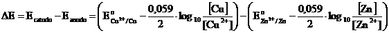 Calcoliamo ora la forza elettromotrice fem in condizioni di concentrazione non standard come differenza di potenziale DE tra catodo ed anodo