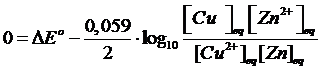 Quando tale reazione avrà raggiunto l'equilibrio non vi sarà più trasferimento di elettroni, la pila sarà esaurita per cui la differenza di potenziale sarà pari a zero.