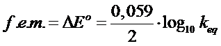 In tal modo mediante la misura della fem in condizioni standard (o più semplicemente mediante la consultazione dei potenziali standard già tabulati) è possibile calcolare la Keq di molte reazioni redox.