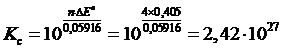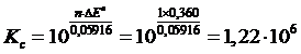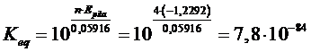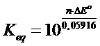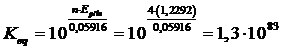 Essendo il numero di elettroni scambiati nella reazione bilanciata di dismutazione pari a n = 4, la costante di equilibrio varrà
