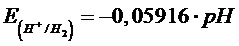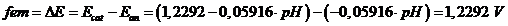 Il potenziale della seconda semireazione è dato in condizioni standard e quindi per [H+] = 1 M e dunque un pH = 0. La dipendenza di tale potenziale dal pH per 1 atm di pressione è