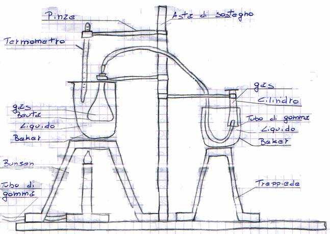 sostegno, alcune pinze, un bunsen che ci servirà per scaldare l'acqua, un tubo