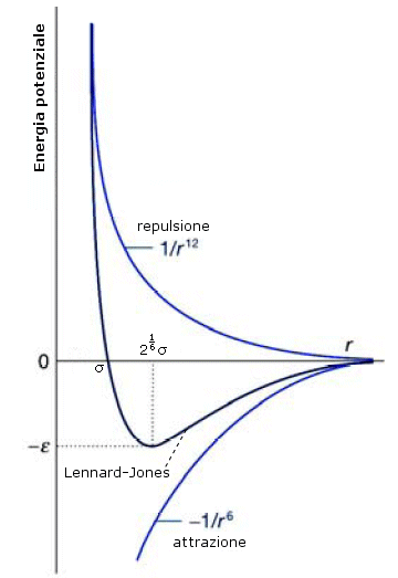in cui compaiono i parametri σ e ε, il cui valore dipende dal tipo di atomi.