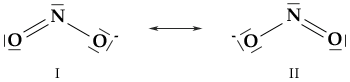 Tutto ciò implica che il doppio legame N-O della formula (I) sia in realtà intermedio ad un legame semplice e un legame doppio (ordine di legame 1.5) e che il legame semplice della stessa formula sia anch'esso intermedio a un legame semplice e un legame doppio. Lo stesso discorso vale per la formula (II). In sostanza, i due legami N-O sono perfettamente equivalenti, come è dimostrato anche dai dati sperimentali circa lunghezze e energie di legame.