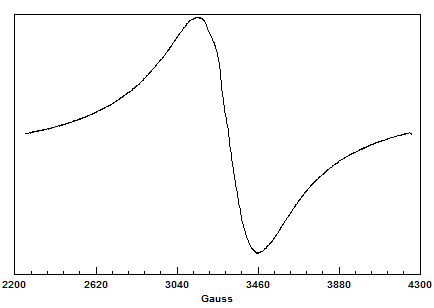 Lo spettro mostra apparentemente la presenza di solo sei delle otto righe attese e dovute all'accoppiamento fra l'elettrone spaiato e il nucleo di vanadio avente spin 7/2. Inoltre, nonostante il campione sia allo stato solido, si osservano gli stessi effetti dinamici che le molecole avrebbero in soluzione. Tuttavia dal momento che esso rimane immutato in un intervallo di temperatura che va da 100°C a +100°C, si può concludere che la forma dello spettro non è attribuibile ad un fenomeno di tipo dinamico tipico di una soluzione liquida.
