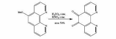 Interessanti furono i risultati di Gillard e collaboratori [[iii] ],[[iv]] che studiando il comportamento di complessi di cobalto e rutenio con fenantrolina riuscirono ad ossidare quest' ultima a pdonq mediante l' uso di miscela solfonitrica in presenza di NaBr.