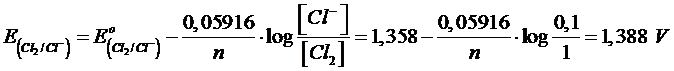 Applichiamo l'equazione di Nernst per calcolare il potenziale del Cloro con [Cl-] = 0,1M e p = 1 atm