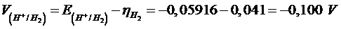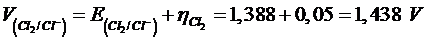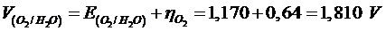 VD = (Ea+ ηa) - (Ec - ηc) = (1,438 + 0,05) - (- 0,100 - 0,041) = 1,629 V