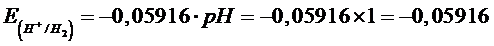 calcoliamo il potenziale dell'idrogeno a pH = 1 ed 1 atm