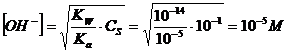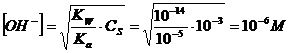 Se ad esempio assumiamo che l'acido abbia una concentrazione compresa tra 10-1 e 10-3, al punto di equivalenza la concentrazione degli ioni OH-, come conseguenza dell'idrolisi basica avrà valori compresi tra