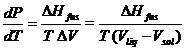 Introducendo per semplicità l'approssimazione che DHfus e DV siano, entro certi limiti, indipendenti dalla temperatura, integrando si ottiene