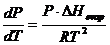 l'equazione di Clapeyron per il passaggio di fase di 1 mole in cui una delle fasi è un gas si presenta nella forma seguente, nota come equazione di Clausius-Clapeyron