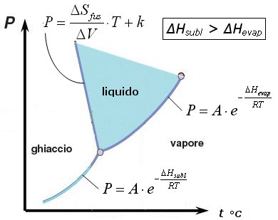 Nei diagrammi di fase le curve della tensione di vapore del liquido e del solido sono calcolabili attraverso l'equazione di Clausius-Clapeyron