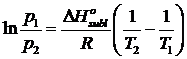 Sottraendo membro a membro l'equazione di Clausius-Clapeyron per due diverse temperature T1 e T2 si ottiene l'equazione di Clausius-Clapeyron in una forma che lega le tensioni di vapor saturo di un liquido o di un solido (sublimazione) a due diverse temperature
